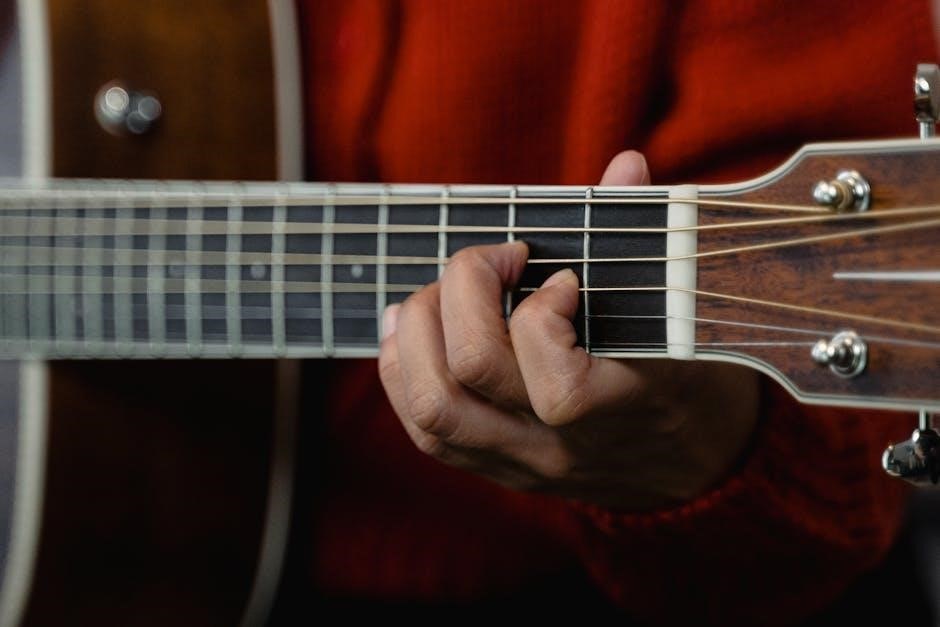 Chord reference charts for beginners are invaluable resources for learning guitar, providing a clear and organized layout of essential chords. These charts are designed to help new players master basic chord shapes and finger placements. Available in downloadable PDF formats, they often include string notes and numbers, making it easier for beginners to understand chord structures. Many charts are printable, allowing guitarists to practice with physical copies during lessons or practice sessions. These reference guides typically cover fundamental open chords, such as A, C, D, E, and G, which are the building blocks of most songs. By using these charts, beginners can build a strong foundation and progress more efficiently in their guitar-playing journey. They are also a great complement to blank chord charts, offering a structured approach to learning and memorizing chords.